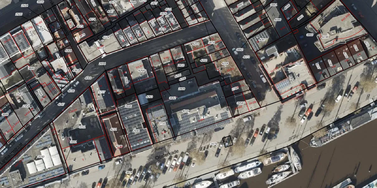 Het perceel waarop Oosterkade 9-e-5 staat heeft een oppervlakte van 757 m². Dit is een groot perceel. De perceeloppervlakte wordt geregistreerd door het Kadaster. Gedetailleerde informatie over de maten van dit perceel kunt u vinden in het rapport Kadastrale kaart met maatvoering van Oosterkade 9-e-5.