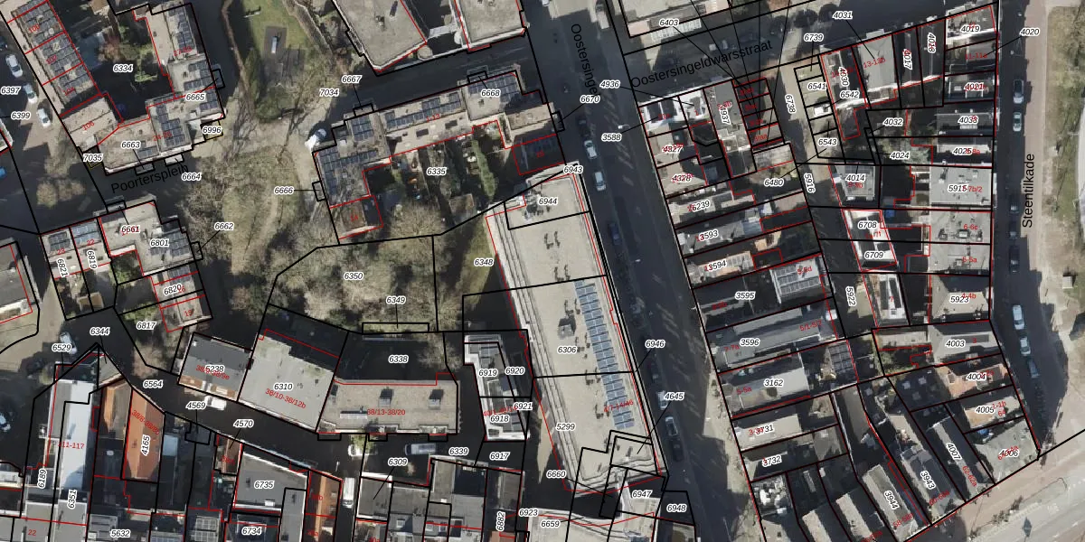 Het perceel waarop Oostersingel 10-43 staat heeft een oppervlakte van 425 m². Dit is een groot perceel. De perceeloppervlakte wordt geregistreerd door het Kadaster. Gedetailleerde informatie over de maten van dit perceel kunt u vinden in het rapport Kadastrale kaart met maatvoering van Oostersingel 10-43.