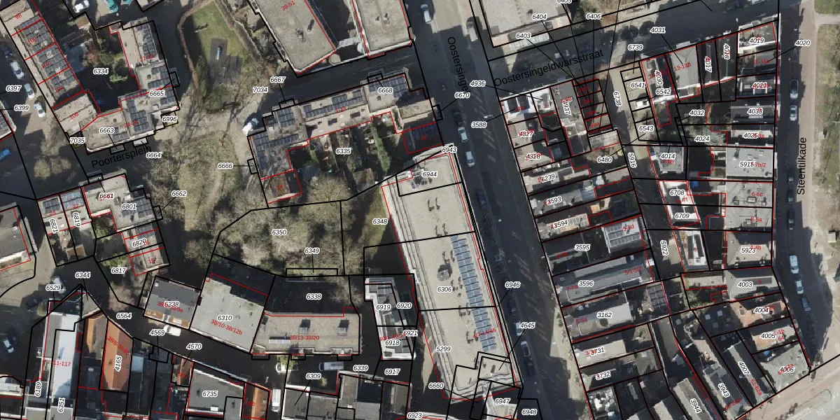 Het perceel waarop Oostersingel 10-46 staat heeft een oppervlakte van 425 m². Dit is een groot perceel. De perceeloppervlakte wordt geregistreerd door het Kadaster. Gedetailleerde informatie over de maten van dit perceel kunt u vinden in het rapport Kadastrale kaart met maatvoering van Oostersingel 10-46.