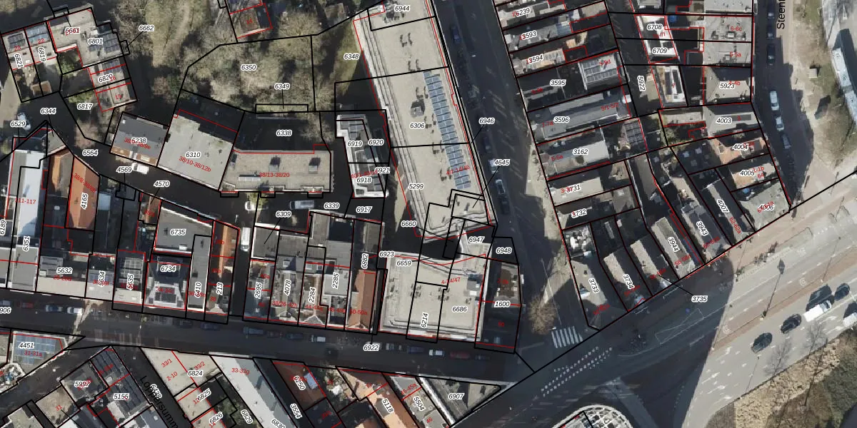 Het adres is gelegen op perceel 6659 in de sectie G en de kadastrale gemeente Groningen. De kadastrale aanduiding is aldus GNG00-G-6659. Het perceel is 131 m² groot. Dat is kleiner dan de gemiddelde perceeloppervlakte in Groningen, dat op 770,7 m² ligt. De grootste perceeloppervlakte in de kadastrale gemeente is 31,8 ha. De kleinste oppervlakte bedraagt 0 m². Er zijn 15 adressen aanwezig op het perceel. De huidige grenzen van het perceel zijn digitaal in de Basisregistratie Kadaster (BRK) geregistreerd op 09-07-2003.