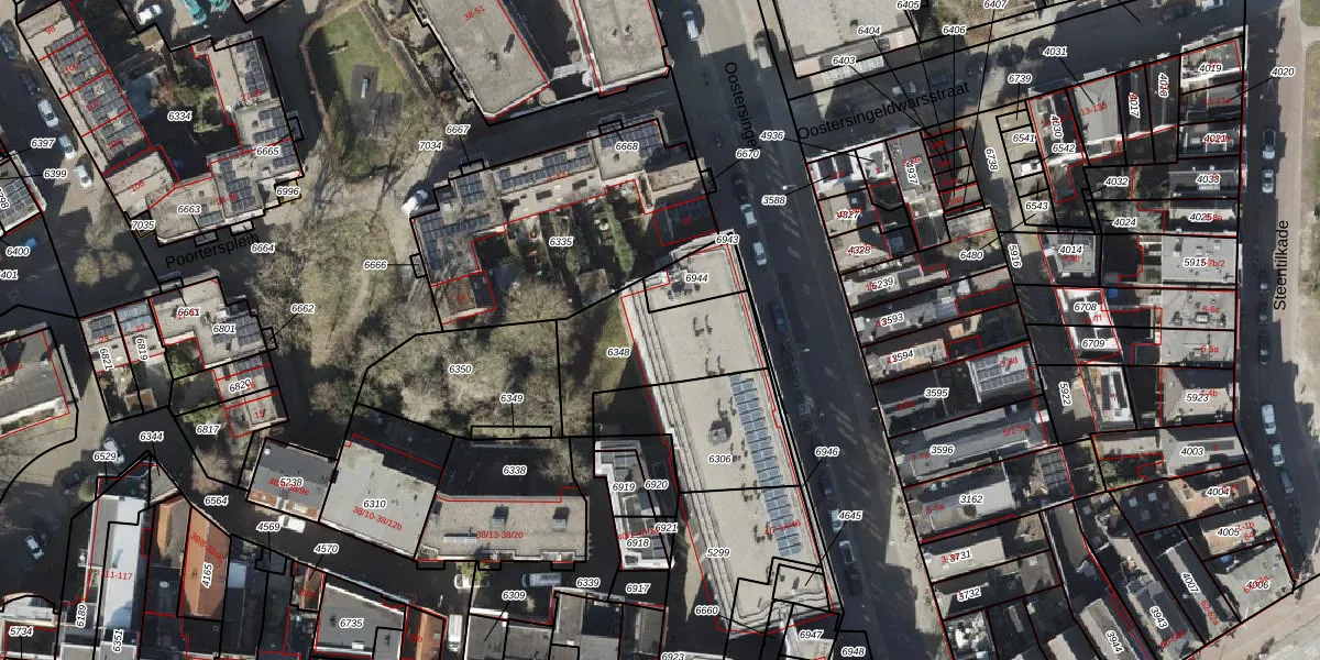 Oostersingel 14-12 is gelegen op kadastraal perceel GNG00G6348. Deze kadastrale aanduiding is uniek en wordt gebruikt door het Kadaster om eigendomsrechten en andere zakelijke rechten vast te leggen. Het perceel maakt onderdeel uit van de kadastrale gemeente Groningen.