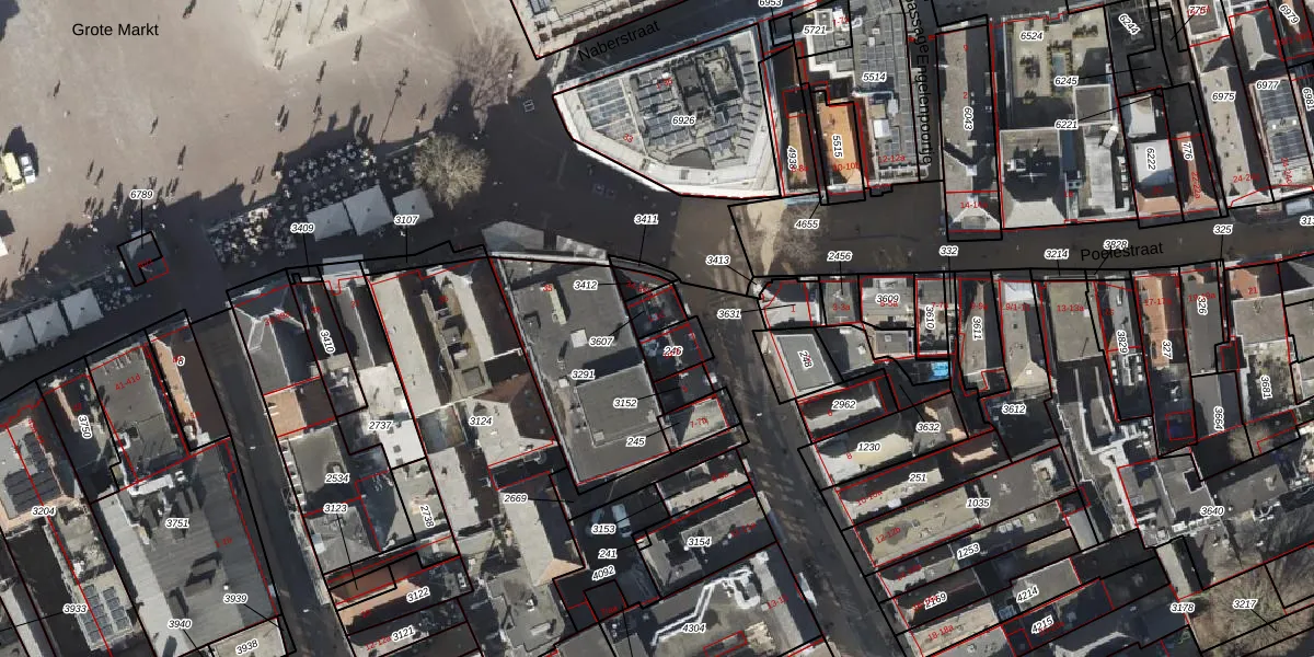 Oosterstraat 1-b is gelegen op kadastraal perceel GNG00H3607. Deze kadastrale aanduiding is uniek en wordt gebruikt door het Kadaster om eigendomsrechten en andere zakelijke rechten vast te leggen. Het perceel maakt onderdeel uit van de kadastrale gemeente Groningen.