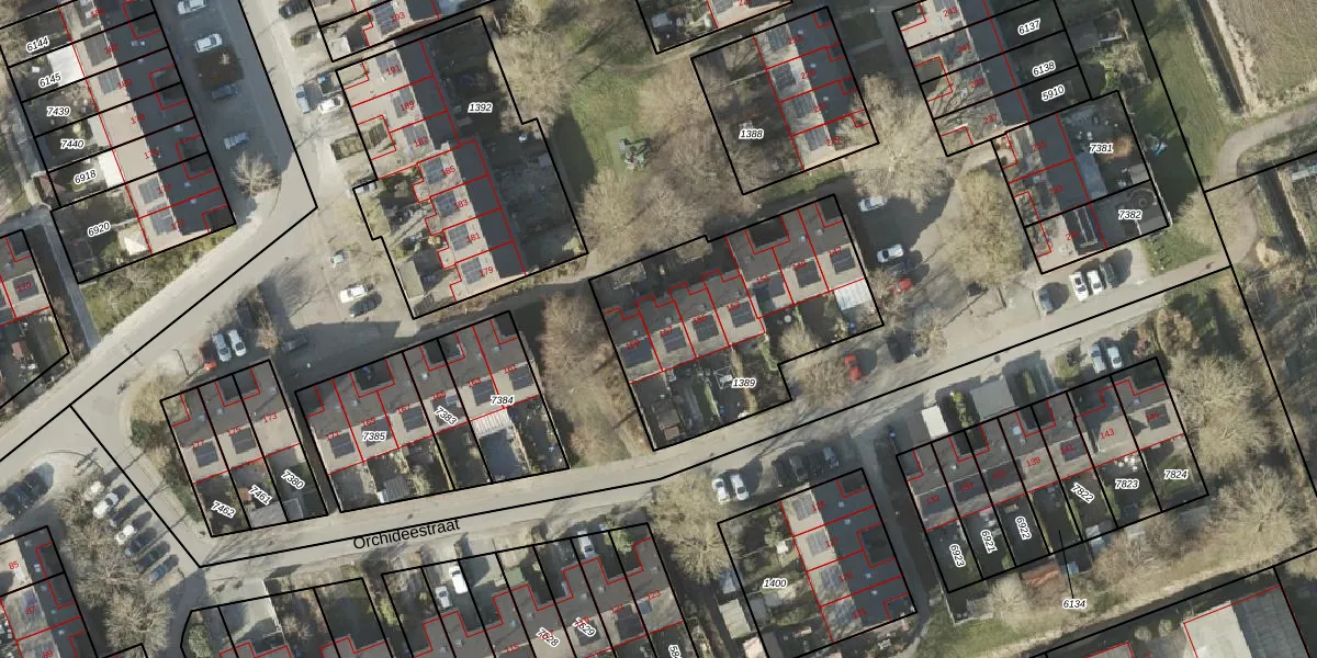Het perceel waarop Orchideestraat 157 staat heeft een oppervlakte van 984 m². Dit is een groot perceel. De perceeloppervlakte wordt geregistreerd door het Kadaster. Gedetailleerde informatie over de maten van dit perceel kunt u vinden in het rapport Kadastrale kaart met maatvoering van Orchideestraat 157.
