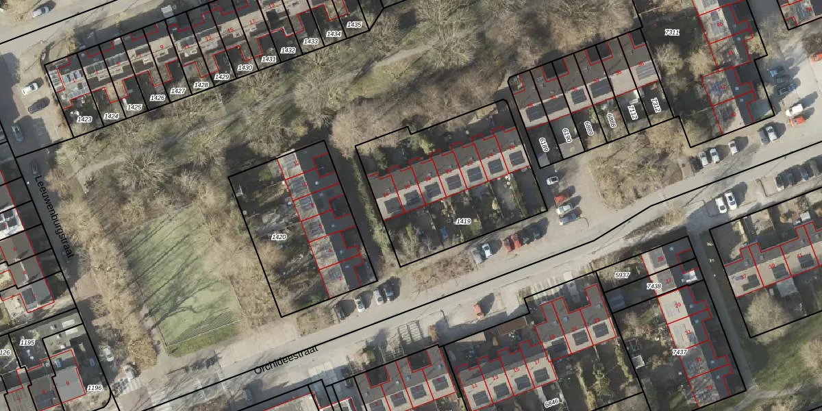 Orchideestraat 16 is gelegen op kadastraal perceel GNG01AC1419. Deze kadastrale aanduiding is uniek en wordt gebruikt door het Kadaster om eigendomsrechten en andere zakelijke rechten vast te leggen. Het perceel maakt onderdeel uit van de kadastrale gemeente Groningen.