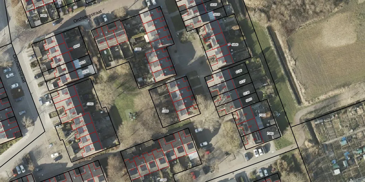 Het perceel waarop Orchideestraat 225 staat heeft een oppervlakte van 488 m². Dit is een groot perceel. De perceeloppervlakte wordt geregistreerd door het Kadaster. Gedetailleerde informatie over de maten van dit perceel kunt u vinden in het rapport Kadastrale kaart met maatvoering van Orchideestraat 225.