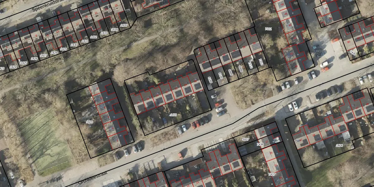 Orchideestraat 24 is gelegen op kadastraal perceel GNG01AC1419. Deze kadastrale aanduiding is uniek en wordt gebruikt door het Kadaster om eigendomsrechten en andere zakelijke rechten vast te leggen. Het perceel maakt onderdeel uit van de kadastrale gemeente Groningen.