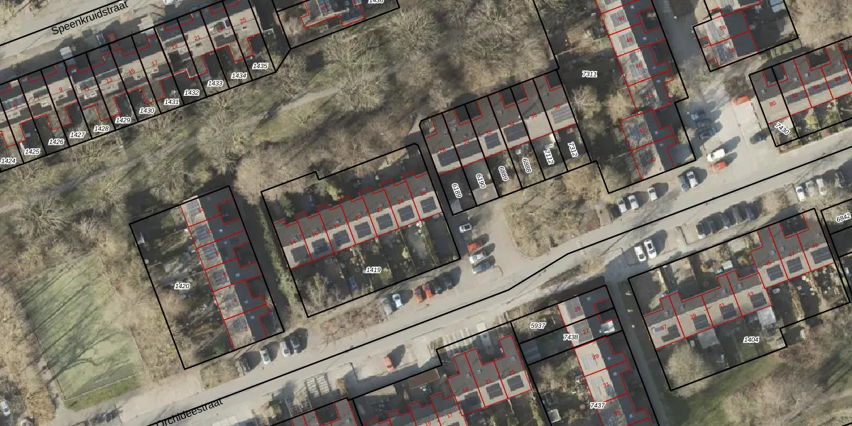 Orchideestraat 26 is gelegen op kadastraal perceel GNG01AC1419. Deze kadastrale aanduiding is uniek en wordt gebruikt door het Kadaster om eigendomsrechten en andere zakelijke rechten vast te leggen. Het perceel maakt onderdeel uit van de kadastrale gemeente Groningen.