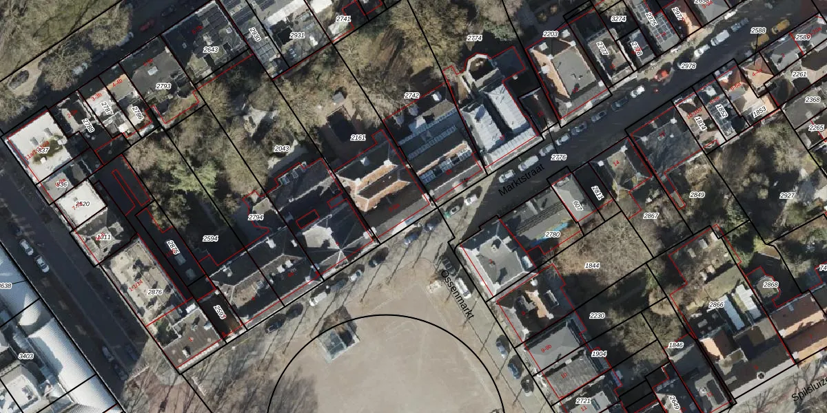 Het perceel waarop Ossenmarkt 6 staat heeft een oppervlakte van 815 m². Dit is een groot perceel. De perceeloppervlakte wordt geregistreerd door het Kadaster. Gedetailleerde informatie over de maten van dit perceel kunt u vinden in het rapport Kadastrale kaart met maatvoering van Ossenmarkt 6.