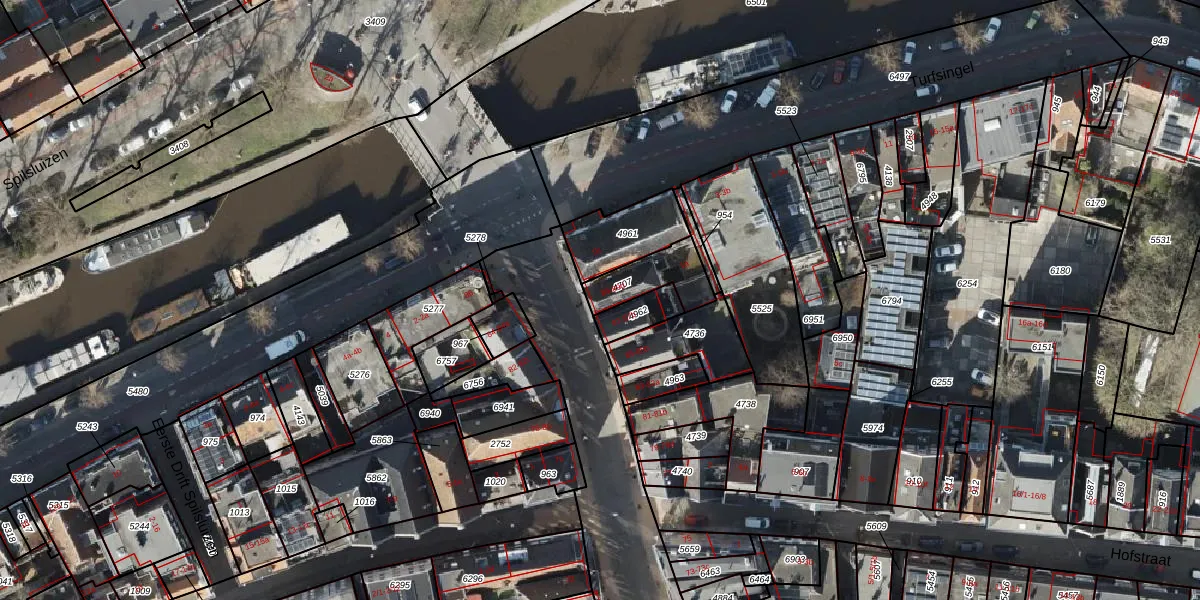 Het adres is gelegen op perceel 4707 in de sectie G en de kadastrale gemeente Groningen. De kadastrale aanduiding is aldus GNG00-G-4707. De gemiddelde perceelgrootte in Groningen is 771,26 m². Dit perceel is kleiner: de perceeloppervlakte bedraagt 138 m². Het kleinste perceel in de kadastrale gemeente is 0 m² groot. De grootste perceeloppervlakte is 31,8 ha. Op het perceel zijn 6 adressen aanwezig. In de Basisregistratie Kadaster (BRK) werden de grenzen van het perceel geregistreerd op 16-06-2003.