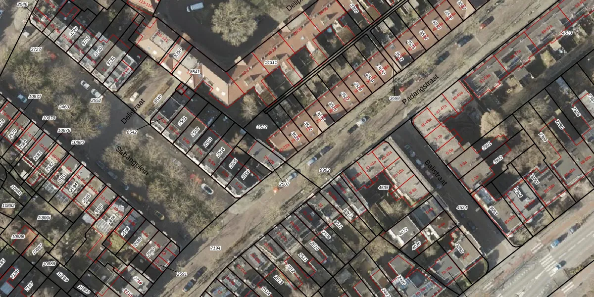 Het perceel waarop Padangstraat 24 staat heeft een oppervlakte van 87 m². Dit is een klein perceel. De perceeloppervlakte wordt geregistreerd door het Kadaster. Gedetailleerde informatie over de maten van dit perceel kunt u vinden in het rapport Kadastrale kaart met maatvoering van Padangstraat 24.