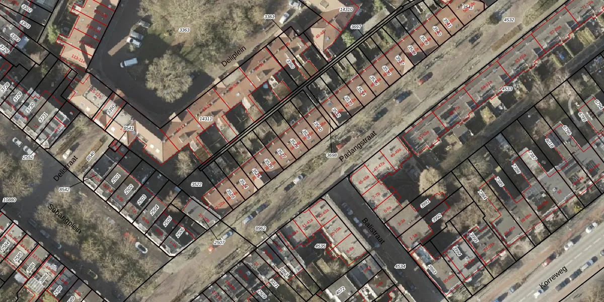 Het perceel waarop Padangstraat 34-a staat heeft een oppervlakte van 88 m². Dit is een klein perceel. De perceeloppervlakte wordt geregistreerd door het Kadaster. Gedetailleerde informatie over de maten van dit perceel kunt u vinden in het rapport Kadastrale kaart met maatvoering van Padangstraat 34-a.