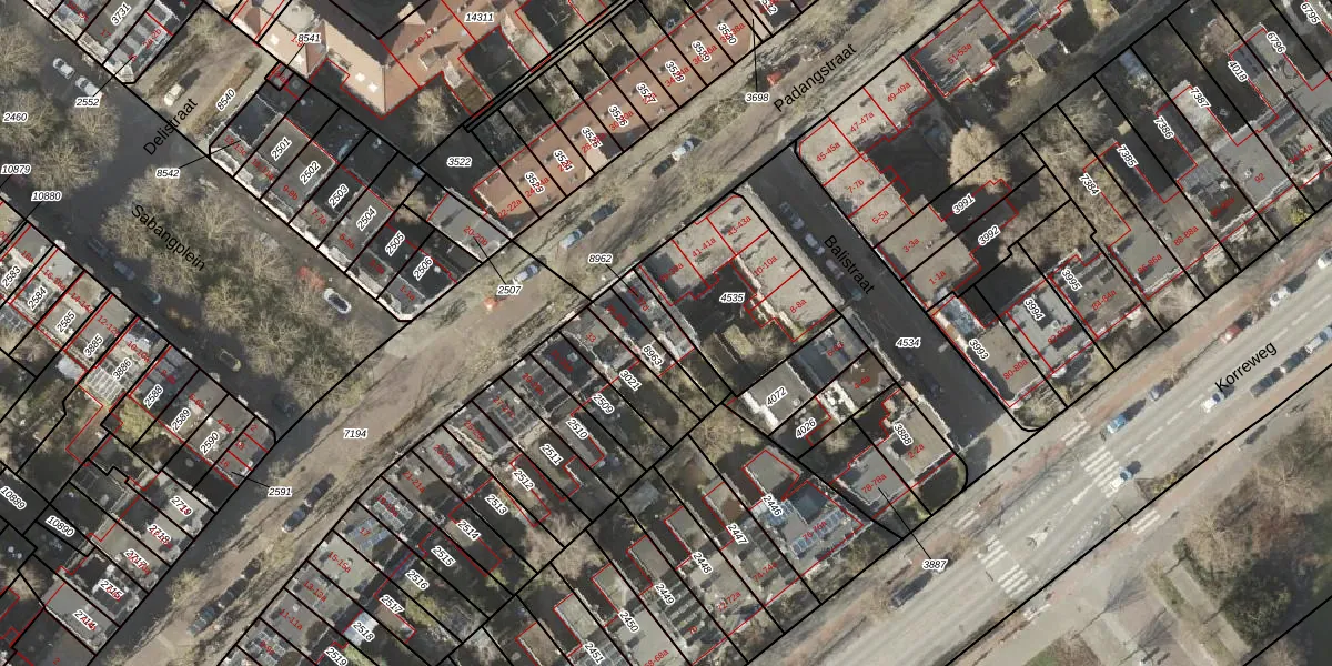 Het perceel waarop Padangstraat 37-c staat heeft een oppervlakte van 91 m². Dit is een klein perceel. De perceeloppervlakte wordt geregistreerd door het Kadaster. Gedetailleerde informatie over de maten van dit perceel kunt u vinden in het rapport Kadastrale kaart met maatvoering van Padangstraat 37-c.