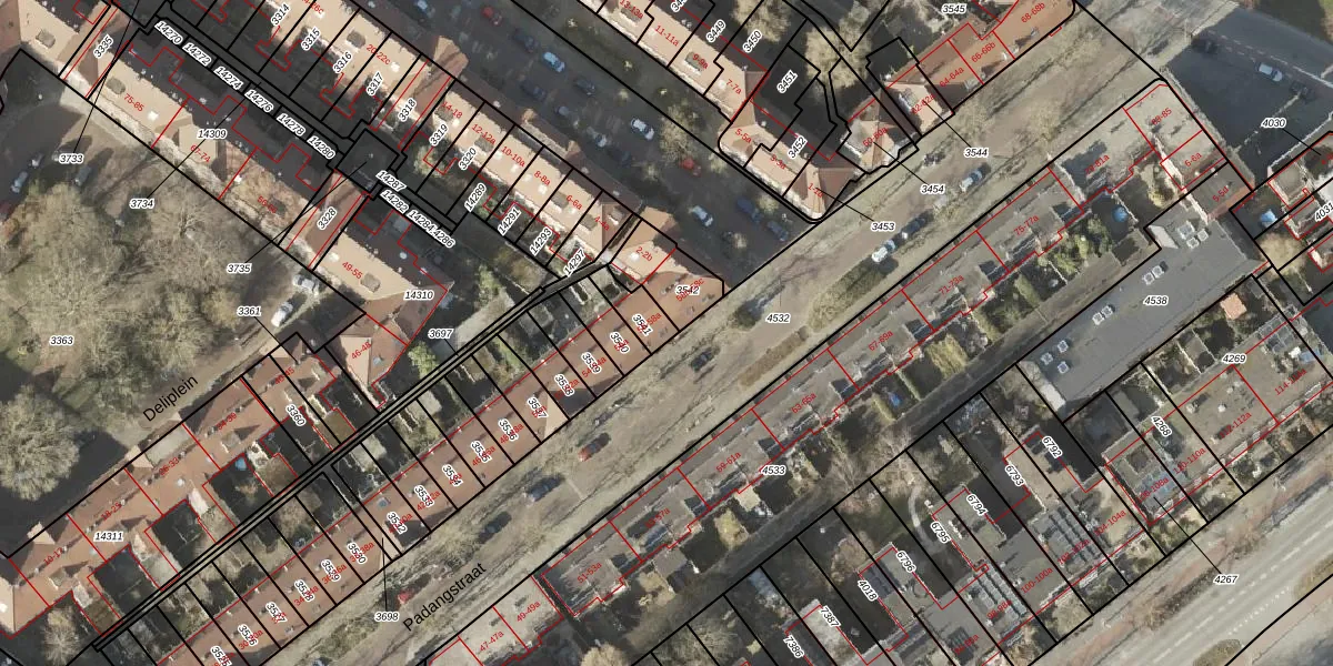 Het perceel waarop Padangstraat 58-a staat heeft een oppervlakte van 66 m². Dit is een klein perceel. De perceeloppervlakte wordt geregistreerd door het Kadaster. Gedetailleerde informatie over de maten van dit perceel kunt u vinden in het rapport Kadastrale kaart met maatvoering van Padangstraat 58-a.