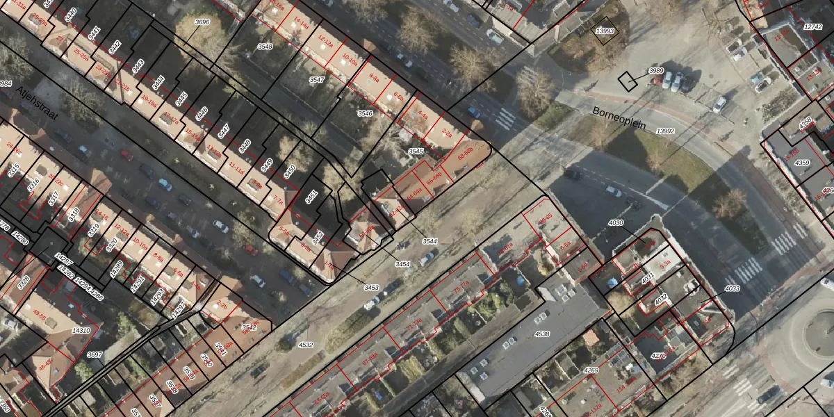 Het perceel waarop Padangstraat 64 staat heeft een oppervlakte van 576 m². Dit is een groot perceel. De perceeloppervlakte wordt geregistreerd door het Kadaster. Gedetailleerde informatie over de maten van dit perceel kunt u vinden in het rapport Kadastrale kaart met maatvoering van Padangstraat 64.