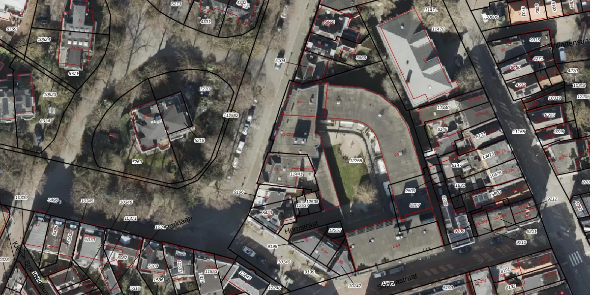 Het perceel waarop Parklaan 22-3 staat heeft een oppervlakte van 2335 m². Dit is een zeer groot perceel. De perceeloppervlakte wordt geregistreerd door het Kadaster. Gedetailleerde informatie over de maten van dit perceel kunt u vinden in het rapport Kadastrale kaart met maatvoering van Parklaan 22-3.
