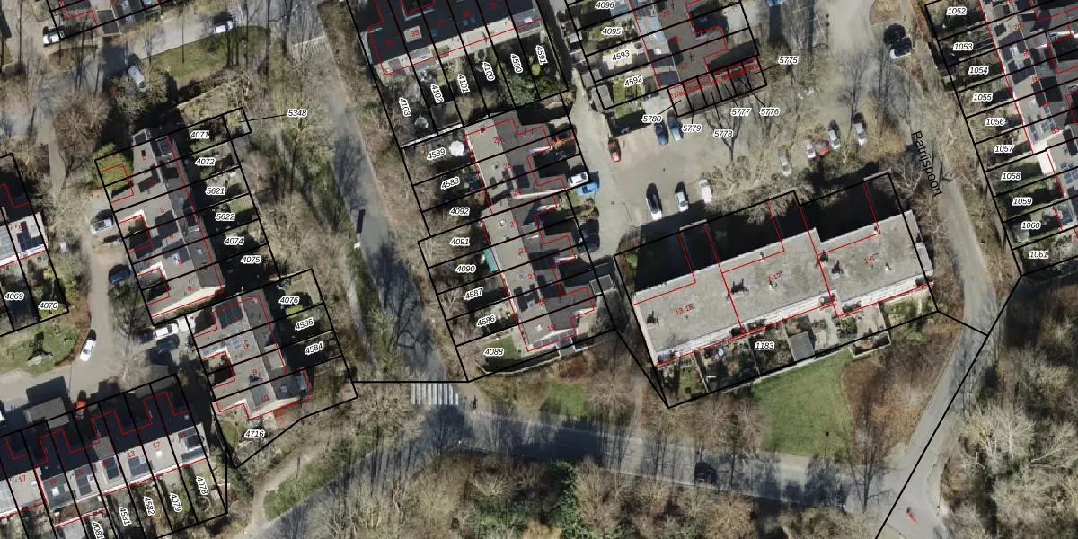 Gebruik de zoekbalk of klik op een perceel voor informatie over de adressen binnen dit perceel.