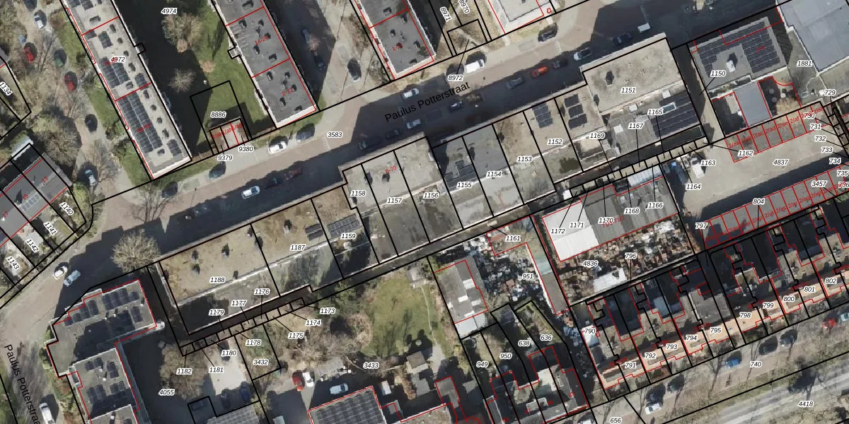 Paulus Potterstraat 46 is gelegen op kadastraal perceel GNG00L1156. Deze kadastrale aanduiding is uniek en wordt gebruikt door het Kadaster om eigendomsrechten en andere zakelijke rechten vast te leggen. Het perceel maakt onderdeel uit van de kadastrale gemeente Groningen.