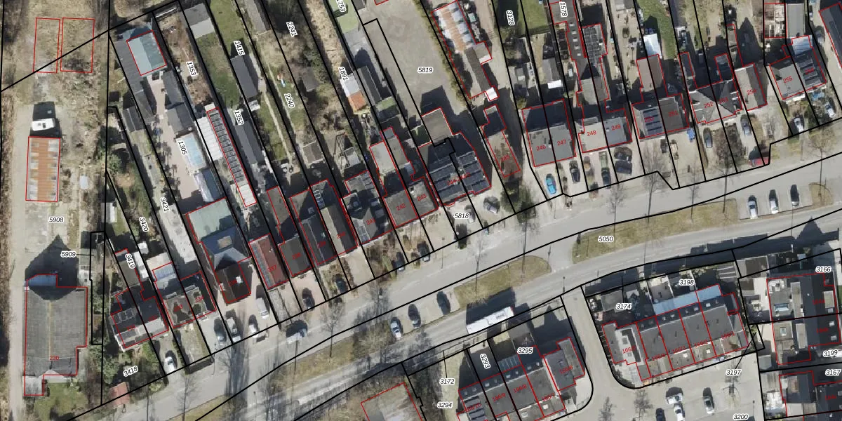 Gebruik de zoekbalk of klik op een perceel voor informatie over de adressen binnen dit perceel.