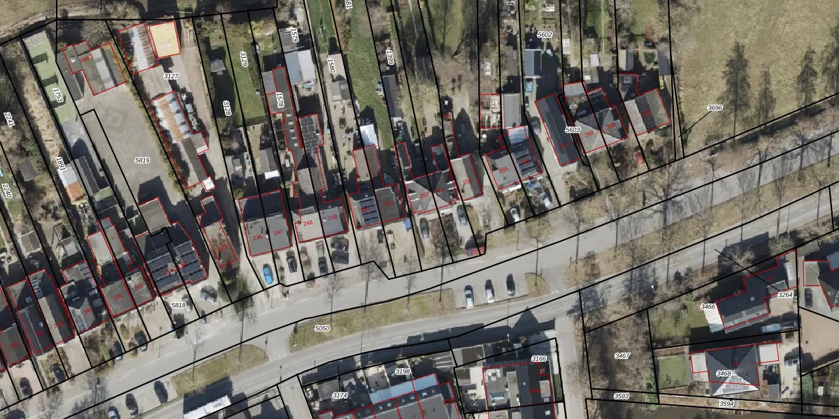 Gebruik de zoekbalk of klik op een perceel voor informatie over de adressen binnen dit perceel.