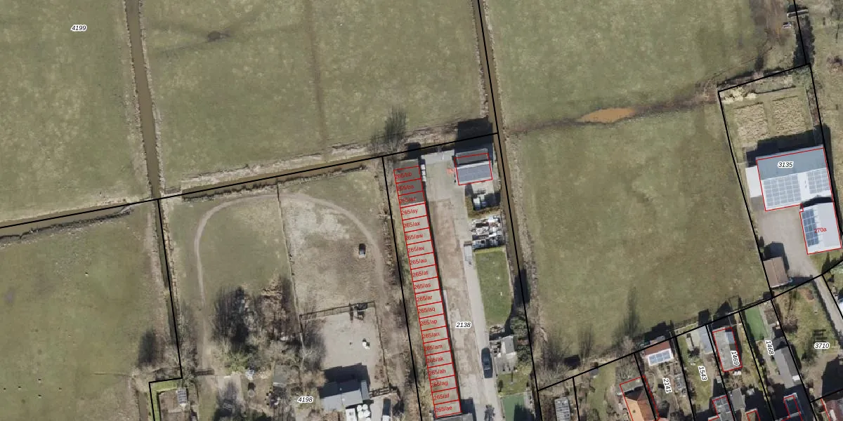 Het perceel waarop Peizerweg 265-ay staat heeft een oppervlakte van 2748 m². Dit is een zeer groot perceel. De perceeloppervlakte wordt geregistreerd door het Kadaster. Gedetailleerde informatie over de maten van dit perceel kunt u vinden in het rapport Kadastrale kaart met maatvoering van Peizerweg 265-ay.