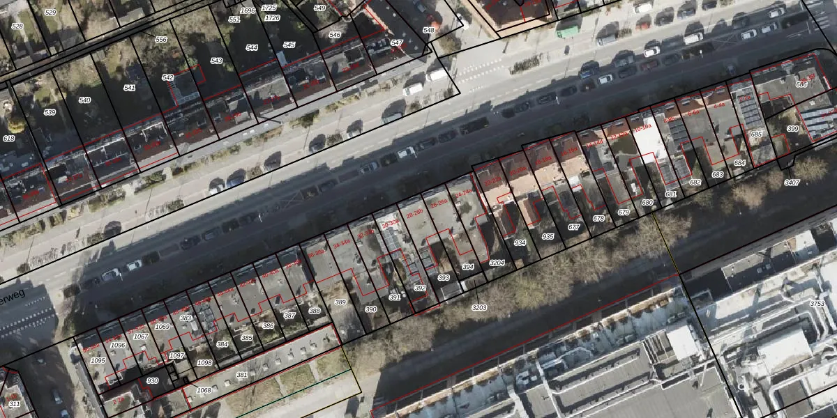 Het adres ligt op het perceel GNG00-R-393, dat zich in de kadastrale gemeente Groningen bevindt. Het perceel is kleiner dan gemiddeld in Groningen. Het perceel is 166 m² groot, terwijl het gemiddelde ligt op 772,77 m². De grootste perceeloppervlakte in de kadastrale gemeente is 31,8 ha. De kleinste oppervlakte bedraagt 0 m². Er zijn 3 adressen aanwezig op het perceel. De huidige grenzen van het perceel zijn digitaal in de Basisregistratie Kadaster (BRK) geregistreerd op 22-06-2004.