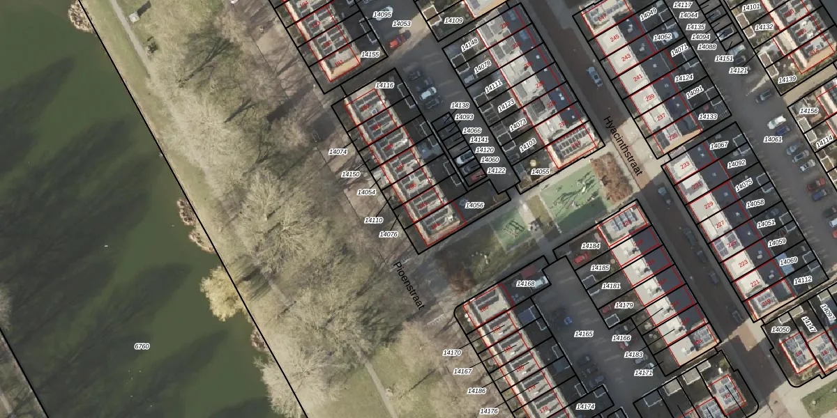 Het perceel waarop Pioenstraat 185 staat heeft een oppervlakte van 95 m². Dit is een klein perceel. De perceeloppervlakte wordt geregistreerd door het Kadaster. Gedetailleerde informatie over de maten van dit perceel kunt u vinden in het rapport Kadastrale kaart met maatvoering van Pioenstraat 185.