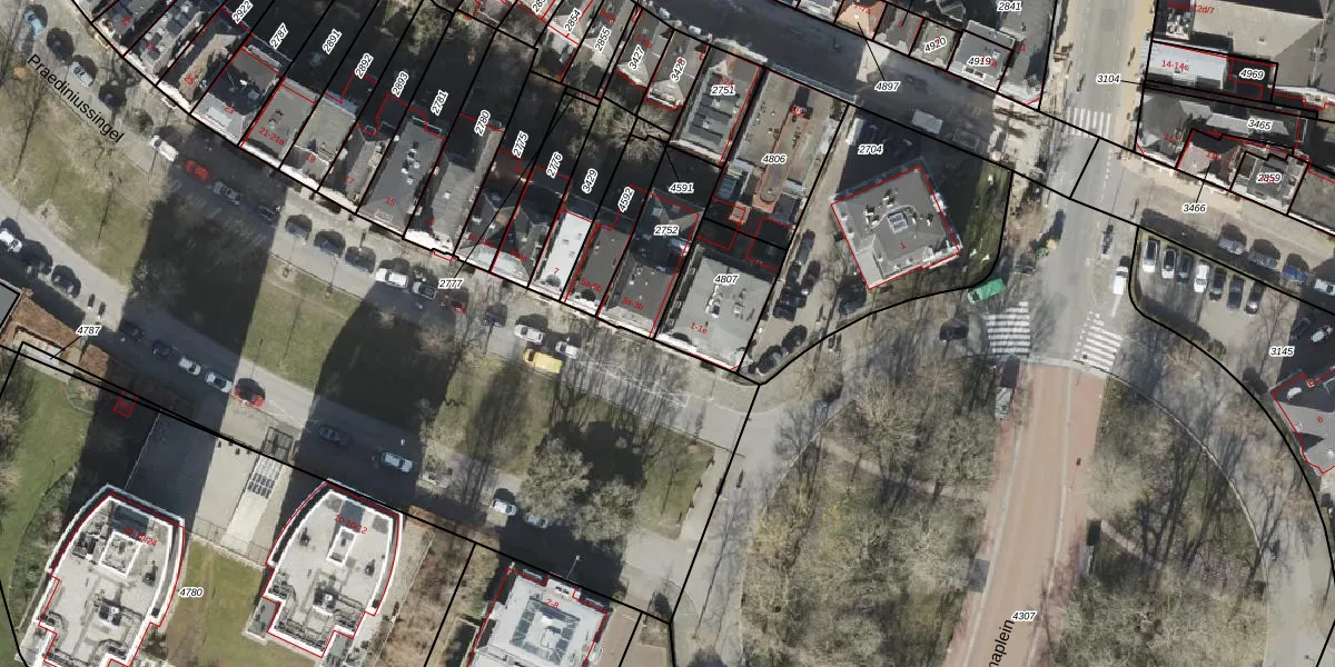 Praediniussingel 1-c is gelegen op kadastraal perceel GNG00I4807. Deze kadastrale aanduiding is uniek en wordt gebruikt door het Kadaster om eigendomsrechten en andere zakelijke rechten vast te leggen. Het perceel maakt onderdeel uit van de kadastrale gemeente Groningen.