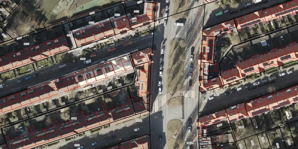Prinsesseweg 30 is gelegen op kadastraal perceel GNG00D3099. Deze kadastrale aanduiding is uniek en wordt gebruikt door het Kadaster om eigendomsrechten en andere zakelijke rechten vast te leggen. Het perceel maakt onderdeel uit van de kadastrale gemeente Groningen.