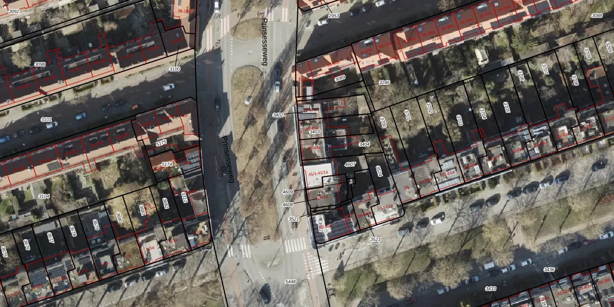 Prinsesseweg 43-a is gelegen op kadastraal perceel GNG00D3404. Deze kadastrale aanduiding is uniek en wordt gebruikt door het Kadaster om eigendomsrechten en andere zakelijke rechten vast te leggen. Het perceel maakt onderdeel uit van de kadastrale gemeente Groningen.