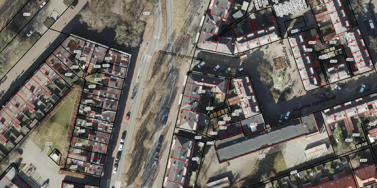 Het perceel waarop Prinsesseweg 77 staat heeft een oppervlakte van 592 m². Dit is een groot perceel. De perceeloppervlakte wordt geregistreerd door het Kadaster. Gedetailleerde informatie over de maten van dit perceel kunt u vinden in het rapport Kadastrale kaart met maatvoering van Prinsesseweg 77.