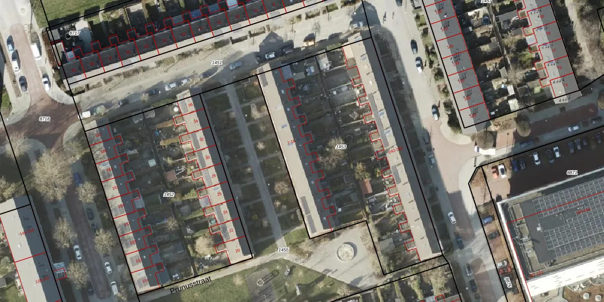 Het perceel waarop Prunusstraat 16 staat heeft een oppervlakte van 2675 m². Dit is een zeer groot perceel. De perceeloppervlakte wordt geregistreerd door het Kadaster. Gedetailleerde informatie over de maten van dit perceel kunt u vinden in het rapport Kadastrale kaart met maatvoering van Prunusstraat 16.