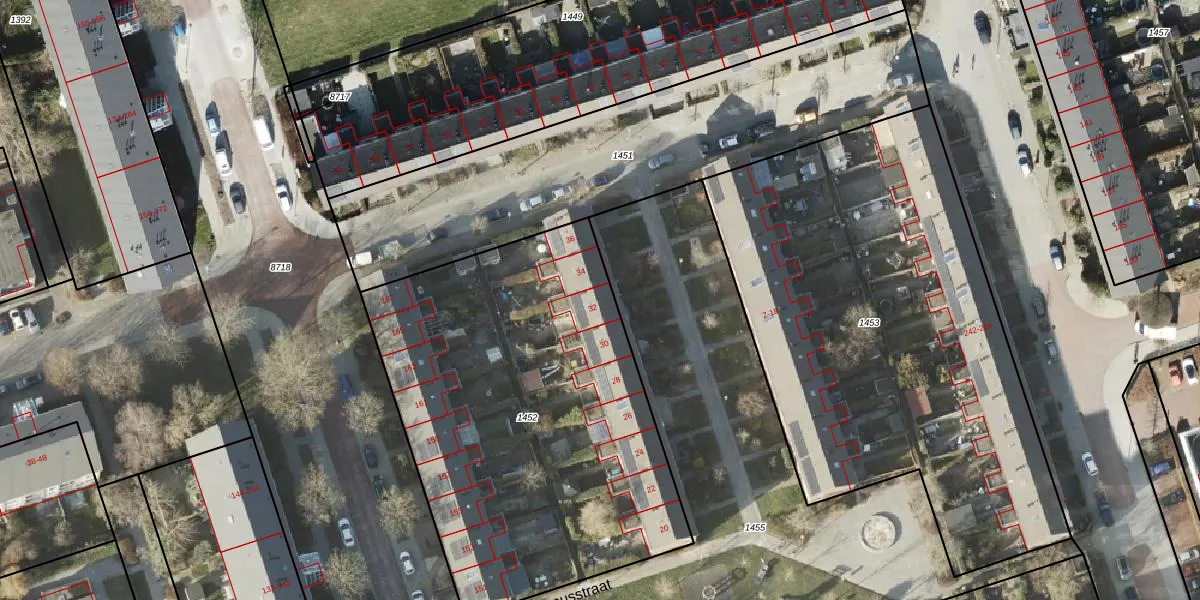 Het adres is gelegen op perceel 1452 in de sectie L en de kadastrale gemeente Groningen. De kadastrale aanduiding is aldus GNG00-L-1452. Het perceel is met 2288 m² relatief groot. Het gemiddelde ligt in de kadastrale gemeente Groningen op 771,26 m². Het grootste perceel in de kadastrale gemeente is 31,8 ha. Het kleinste perceel heeft een oppervlakte van 0 m². Er zijn 18 adressen aanwezig op het perceel. De huidige grenzen van het perceel zijn digitaal in de Basisregistratie Kadaster (BRK) geregistreerd op 14-08-2003.