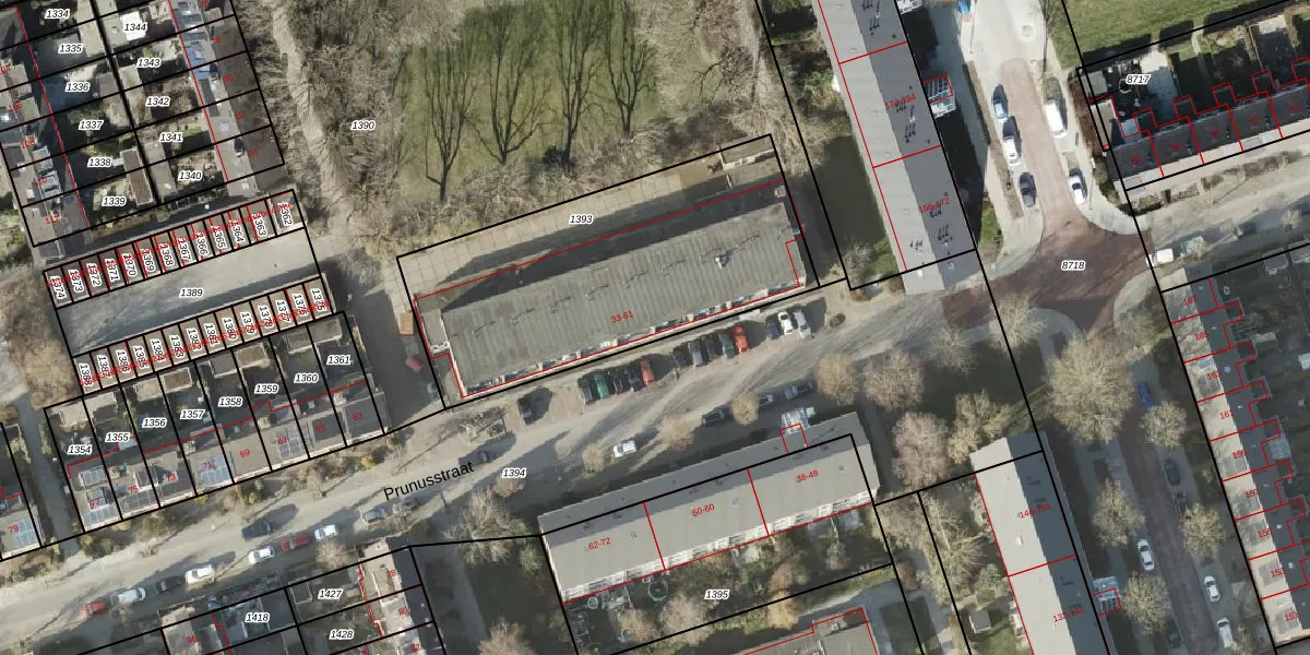 Prunusstraat 39 is gelegen op kadastraal perceel GNG00L1393. Deze kadastrale aanduiding is uniek en wordt gebruikt door het Kadaster om eigendomsrechten en andere zakelijke rechten vast te leggen. Het perceel maakt onderdeel uit van de kadastrale gemeente Groningen.