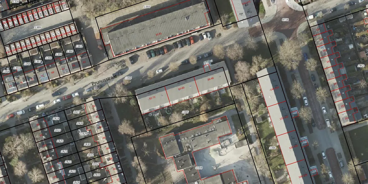 Prunusstraat 58 is gelegen op kadastraal perceel GNG00L1395. Deze kadastrale aanduiding is uniek en wordt gebruikt door het Kadaster om eigendomsrechten en andere zakelijke rechten vast te leggen. Het perceel maakt onderdeel uit van de kadastrale gemeente Groningen.