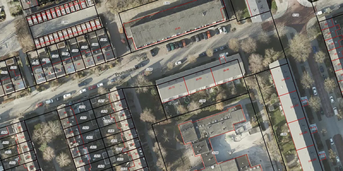 Prunusstraat 64 is gelegen op kadastraal perceel GNG00L1395. Deze kadastrale aanduiding is uniek en wordt gebruikt door het Kadaster om eigendomsrechten en andere zakelijke rechten vast te leggen. Het perceel maakt onderdeel uit van de kadastrale gemeente Groningen.