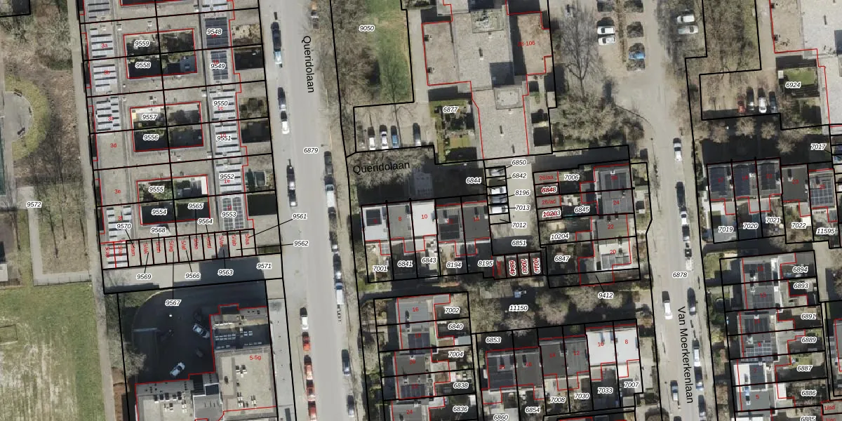 Het perceel waarop Queridolaan 10 staat heeft een oppervlakte van 106 m². Dit is een middelgroot perceel. De perceeloppervlakte wordt geregistreerd door het Kadaster. Gedetailleerde informatie over de maten van dit perceel kunt u vinden in het rapport Kadastrale kaart met maatvoering van Queridolaan 10.