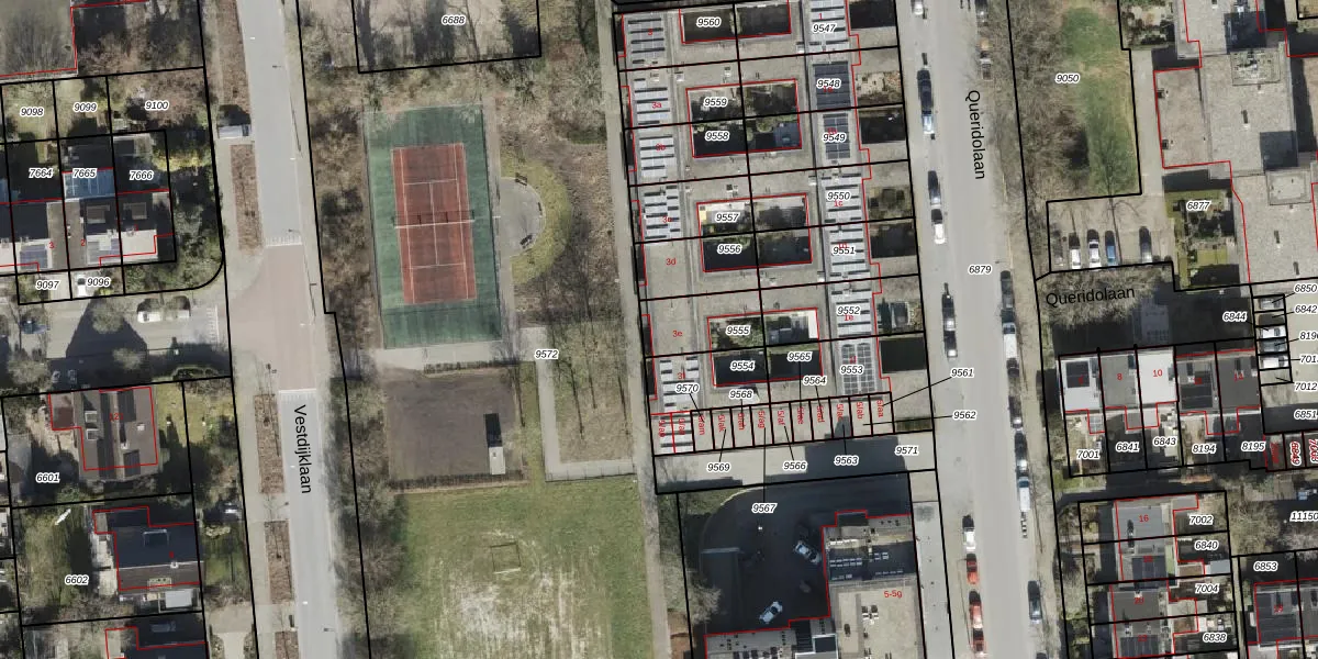 Gebruik de zoekbalk of klik op een perceel voor informatie over de adressen binnen dit perceel.