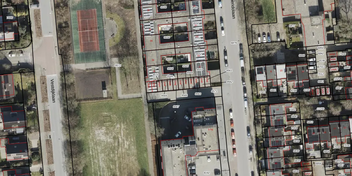 Het perceel waarop Queridolaan 5-ag staat heeft een oppervlakte van 19 m². Dit is een klein perceel. De perceeloppervlakte wordt geregistreerd door het Kadaster. Gedetailleerde informatie over de maten van dit perceel kunt u vinden in het rapport Kadastrale kaart met maatvoering van Queridolaan 5-ag.