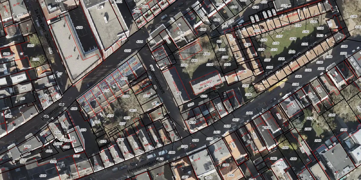 Het perceel waarop Rademarkt 29-21 staat heeft een oppervlakte van 1959 m². Dit is een zeer groot perceel. De perceeloppervlakte wordt geregistreerd door het Kadaster. Gedetailleerde informatie over de maten van dit perceel kunt u vinden in het rapport Kadastrale kaart met maatvoering van Rademarkt 29-21.