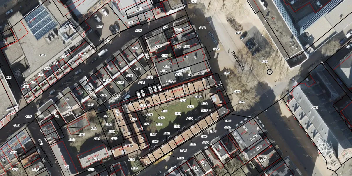 Rademarkt 29-29 is gelegen op kadastraal perceel GNG00H1180. Deze kadastrale aanduiding is uniek en wordt gebruikt door het Kadaster om eigendomsrechten en andere zakelijke rechten vast te leggen. Het perceel maakt onderdeel uit van de kadastrale gemeente Groningen.