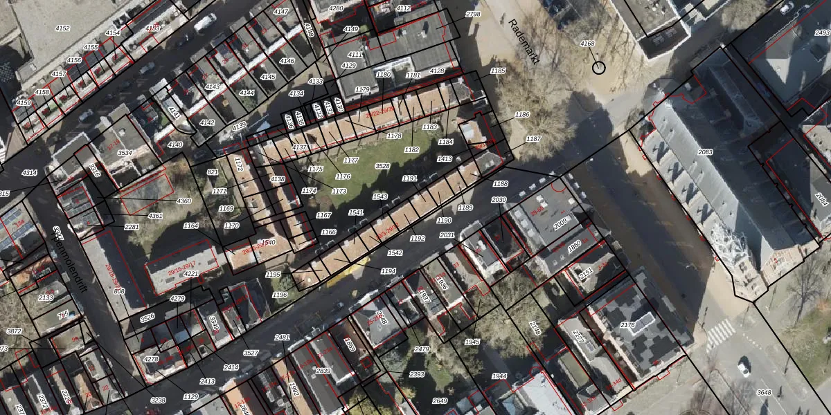Rademarkt 29-4 is gelegen op kadastraal perceel GNG00H1191. Deze kadastrale aanduiding is uniek en wordt gebruikt door het Kadaster om eigendomsrechten en andere zakelijke rechten vast te leggen. Het perceel maakt onderdeel uit van de kadastrale gemeente Groningen.