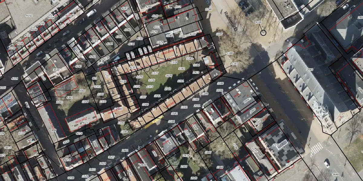 Rademarkt 29-3 is gelegen op kadastraal perceel GNG00H1191. Deze kadastrale aanduiding is uniek en wordt gebruikt door het Kadaster om eigendomsrechten en andere zakelijke rechten vast te leggen. Het perceel maakt onderdeel uit van de kadastrale gemeente Groningen.