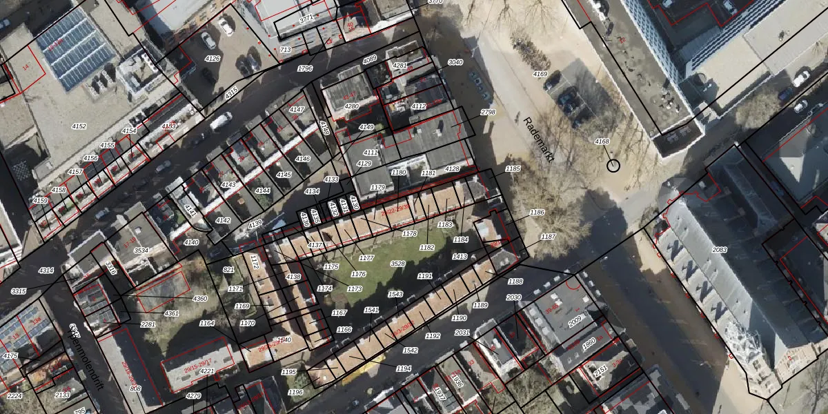 Rademarkt 29-33 is gelegen op kadastraal perceel GNG00H1181. Deze kadastrale aanduiding is uniek en wordt gebruikt door het Kadaster om eigendomsrechten en andere zakelijke rechten vast te leggen. Het perceel maakt onderdeel uit van de kadastrale gemeente Groningen.