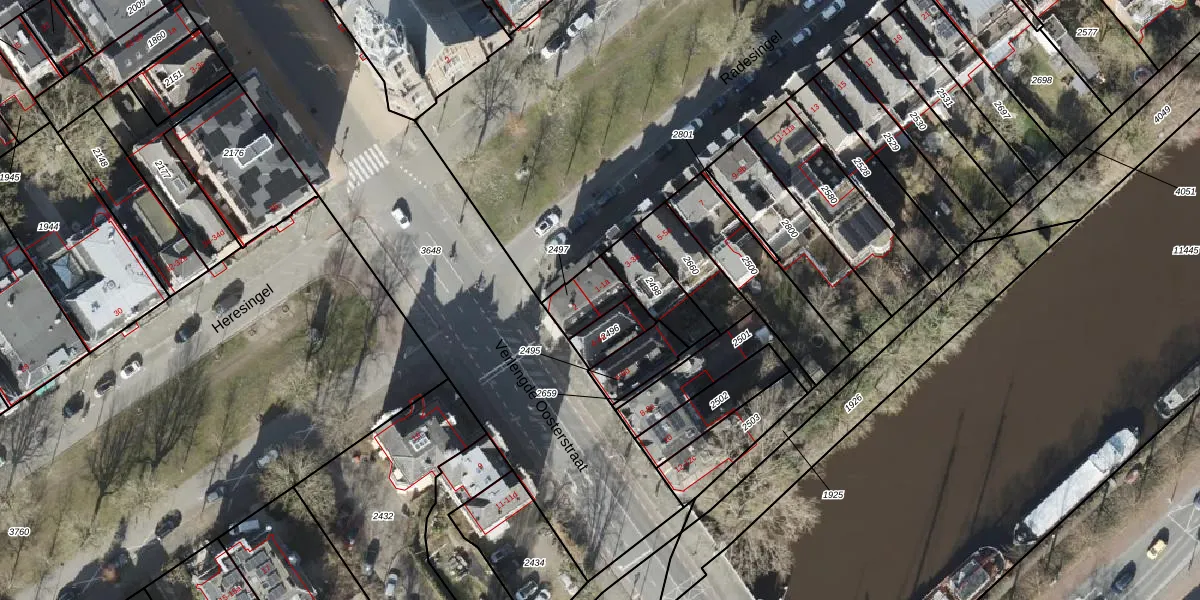 Radesingel 1-1 is gelegen op kadastraal perceel GNG00H2497. Deze kadastrale aanduiding is uniek en wordt gebruikt door het Kadaster om eigendomsrechten en andere zakelijke rechten vast te leggen. Het perceel maakt onderdeel uit van de kadastrale gemeente Groningen.