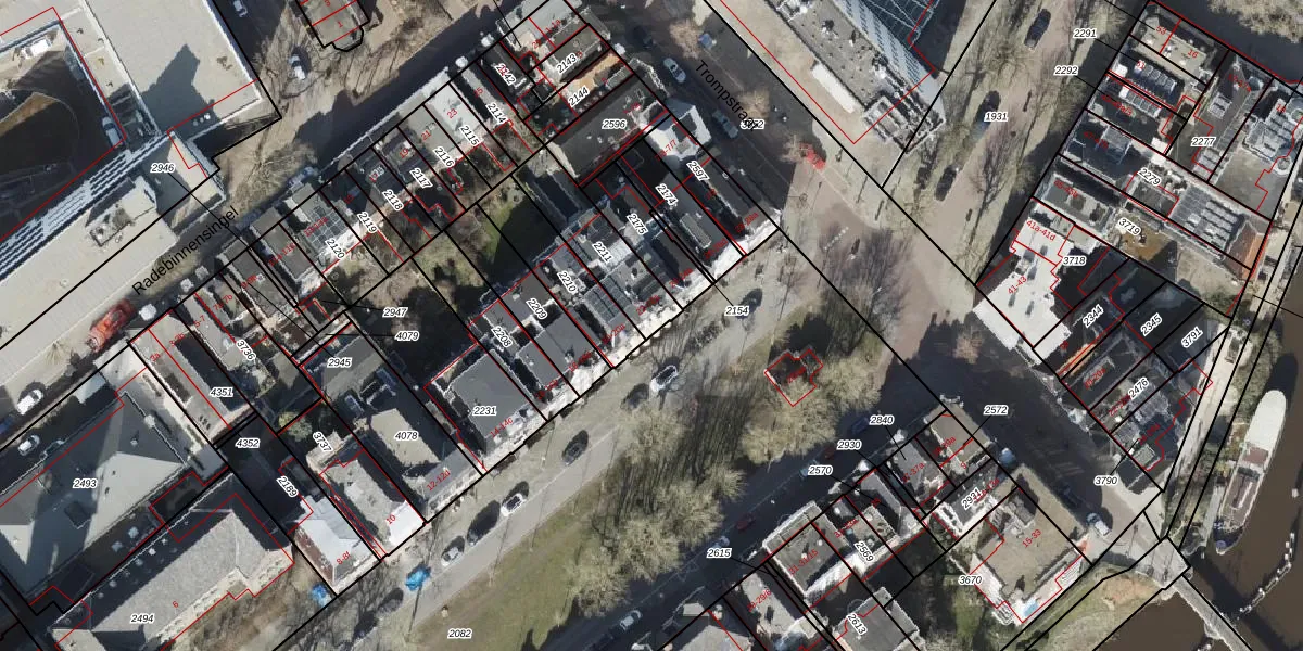 Het perceel waarop Radesingel 22 staat heeft een oppervlakte van 227 m². Dit is een middelgroot perceel. De perceeloppervlakte wordt geregistreerd door het Kadaster. Gedetailleerde informatie over de maten van dit perceel kunt u vinden in het rapport Kadastrale kaart met maatvoering van Radesingel 22.