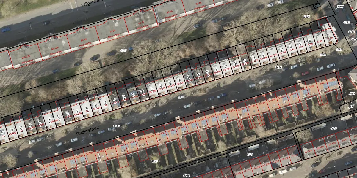Het perceel waarop Radijsstraat 33 staat heeft een oppervlakte van 84 m². Dit is een klein perceel. De perceeloppervlakte wordt geregistreerd door het Kadaster. Gedetailleerde informatie over de maten van dit perceel kunt u vinden in het rapport Kadastrale kaart met maatvoering van Radijsstraat 33.
