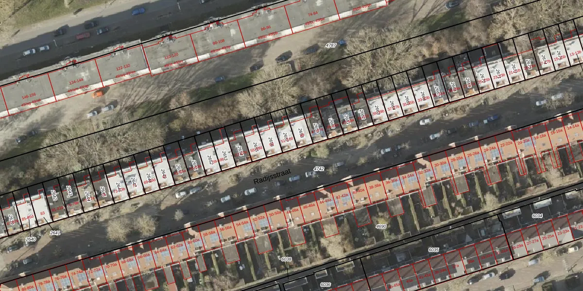 Het perceel waarop Radijsstraat 51-a staat heeft een oppervlakte van 81 m². Dit is een klein perceel. De perceeloppervlakte wordt geregistreerd door het Kadaster. Gedetailleerde informatie over de maten van dit perceel kunt u vinden in het rapport Kadastrale kaart met maatvoering van Radijsstraat 51-a.