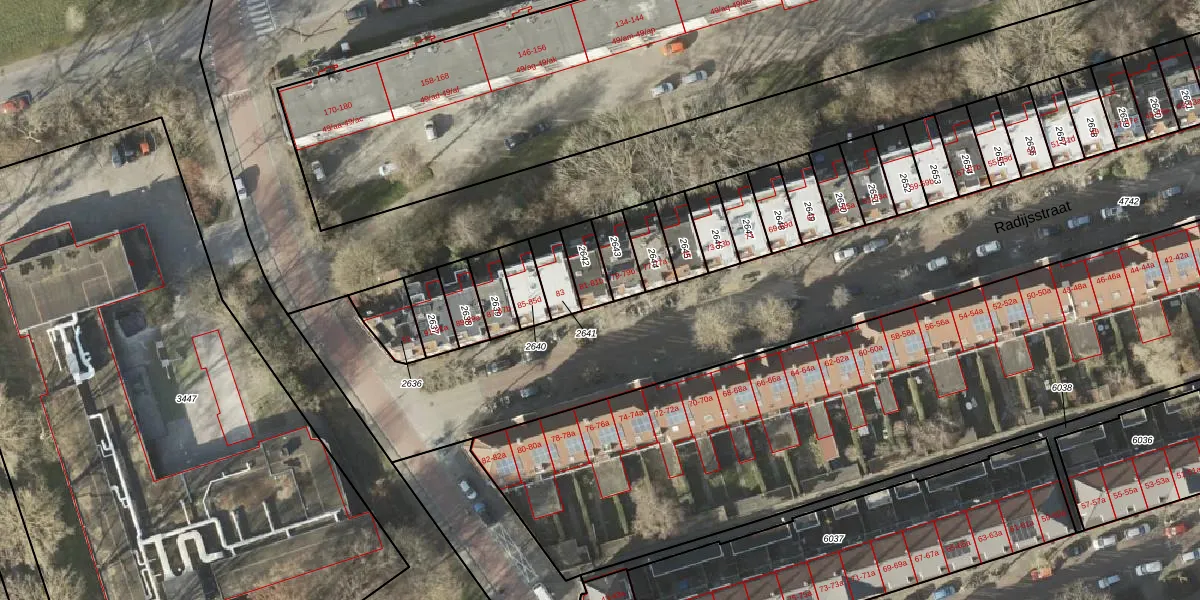 Het perceel waarop Radijsstraat 81-a staat heeft een oppervlakte van 78 m². Dit is een klein perceel. De perceeloppervlakte wordt geregistreerd door het Kadaster. Gedetailleerde informatie over de maten van dit perceel kunt u vinden in het rapport Kadastrale kaart met maatvoering van Radijsstraat 81-a.