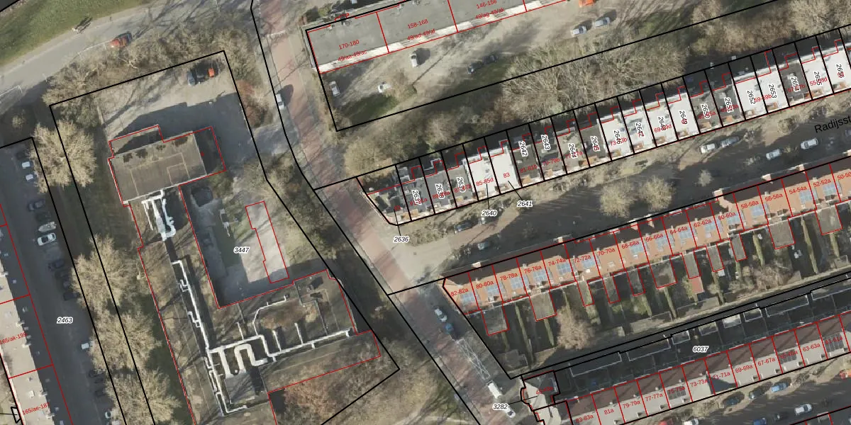Het perceel waarop Radijsstraat 91-a staat heeft een oppervlakte van 77 m². Dit is een klein perceel. De perceeloppervlakte wordt geregistreerd door het Kadaster. Gedetailleerde informatie over de maten van dit perceel kunt u vinden in het rapport Kadastrale kaart met maatvoering van Radijsstraat 91-a.