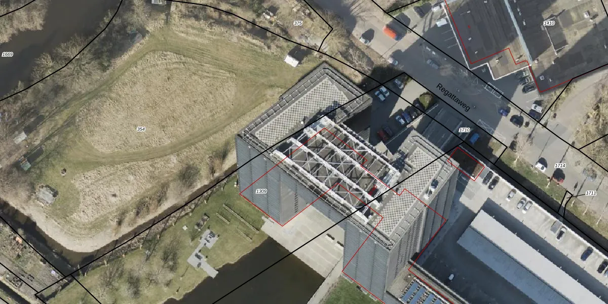 Het perceel waarop Regattaweg 102 staat heeft een oppervlakte van 3950 m². Dit is een zeer groot perceel. De perceeloppervlakte wordt geregistreerd door het Kadaster. Gedetailleerde informatie over de maten van dit perceel kunt u vinden in het rapport Kadastrale kaart met maatvoering van Regattaweg 102.